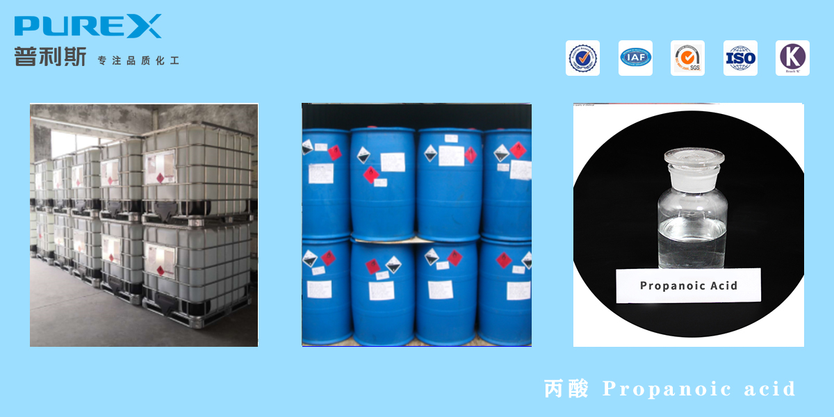 物理性質(zhì):丙酸(propanoic acid)又稱初油酸,是三個碳的羧酸,短鏈飽和脂肪酸,化學(xué)式為CH3CH2COOH。純丙酸是無色、有腐蝕性的液體,有刺激性氣味。